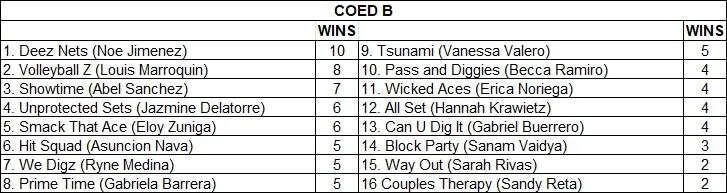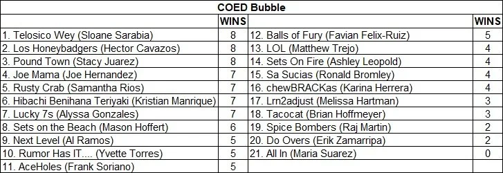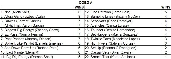 * Divisions: Coed C, B, A, Bubble, Advanced