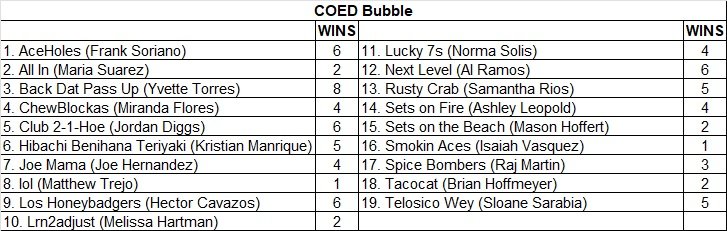 * Divisions: Coed C, B, A, Bubble and Advanced