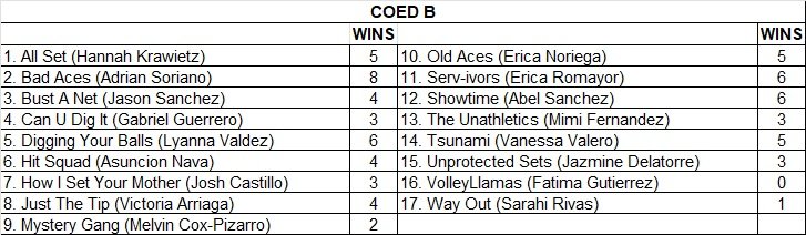 Monday Coed League Teams, Schedules, & Standings