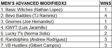 * Divisions: Women’s B, A, AdvMod, Advanced. Men’s No Rated, AdvModX2.