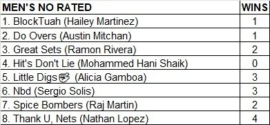 * Divisions: Women’s B, A, AdvMod, Advanced. Men’s No Rated, AMODX2.