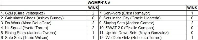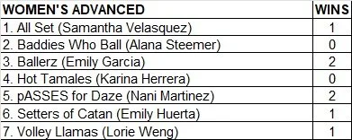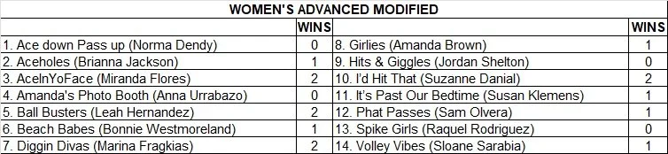 * Divisions: Women’s B, A, AdvMod, Advanced. Men’s No Rated, AMODX2.