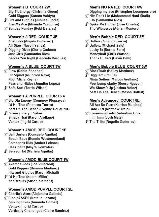 Women's B (Low Intermediate) - Lowest level Women's division. NO Rated players allowed. NO middle hitters allowed. NO Jump serving allowed.